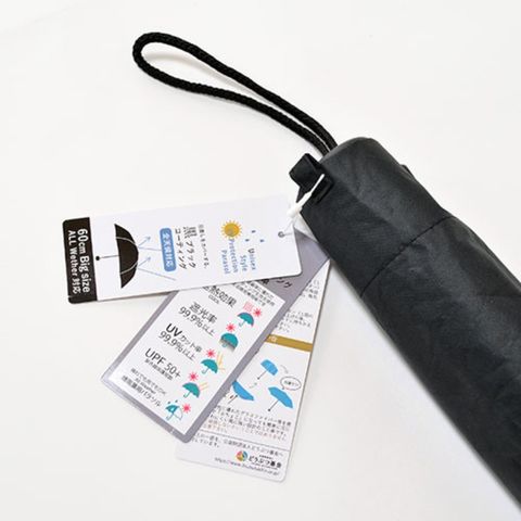 60cm大判サイズのシンプルな無地の黒コーティング晴雨兼用折りたたみ傘。