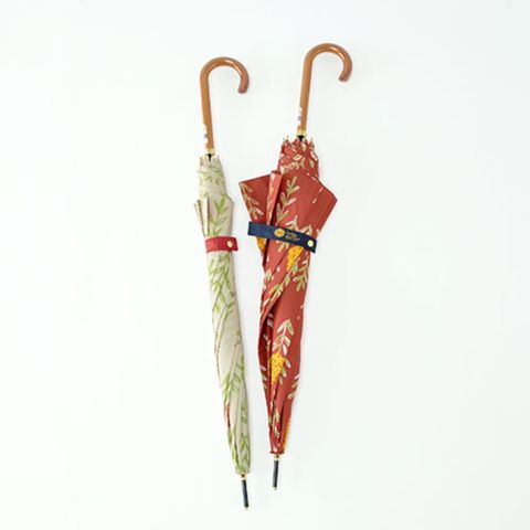 落ち着いたベージュとレッドの色合いがシックな印象の雨傘です。