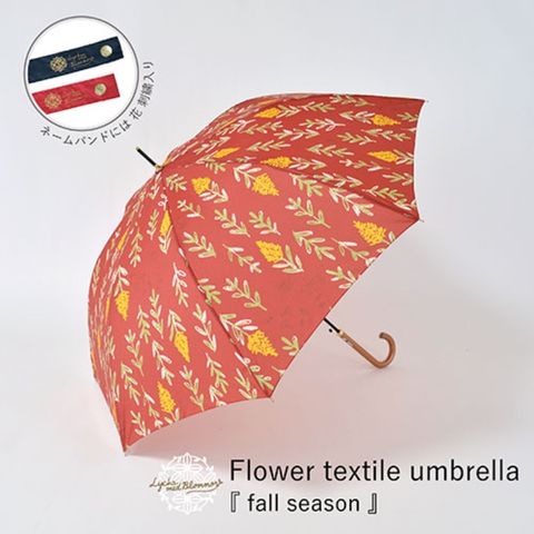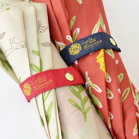 傘を留めるネームバンドはレッドとネイビーの生地でアクセントにしています。