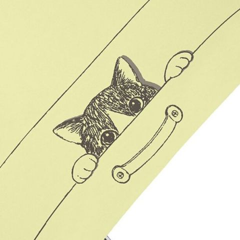 タンスの中にかくれていたいたずら好きな猫さんが、ひょっこり顔を出しているおもしろかわいいプリントの晴雨兼用折りたたみ傘。