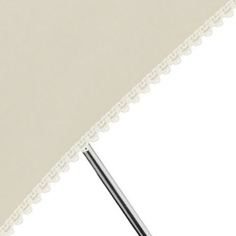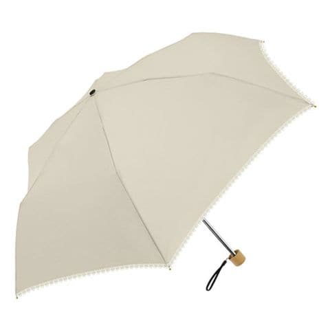 無地にお花モチーフのケミカルレースを裾にぐるっとたたいた、シンプルな晴雨兼用折りたたみ傘。