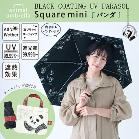 三国 MKN 遮光&遮熱 黒コーティングミニ傘 47センチ 5段スクエアミニ パンダ ブラック S2516702 【同梱不可】[▲][AS]