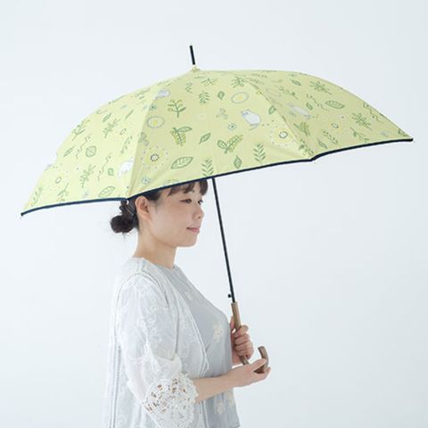 北欧テイストの葉っぱモチーフと、ペルシャとシャム猫の総柄プリントの雨晴兼用傘です。