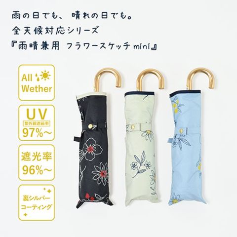 定番人気のスケッチ風のフラワープリントの新作折りたたみ傘。