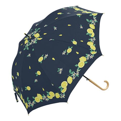 黄色のレモン果実と白いレモンの花が爽やかなプリントの雨晴兼用ジャンプ傘です。