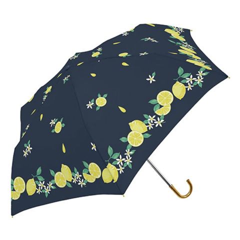 黄色のレモン果実と白いレモンの花が爽やかなプリントの雨晴兼用折りたたみ傘。