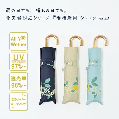 紫外線遮蔽率/遮光率に優れる(※)裏シルバーコーティング生地を使用した、全天候対応の折りたたみ傘。