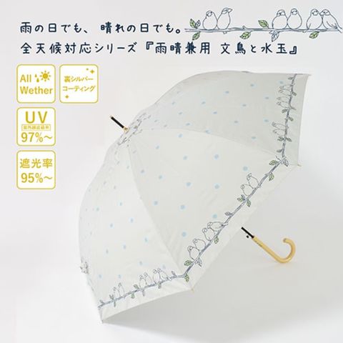三国 MKN シルバーコーティング 雨晴兼用 60cm ジャンプ傘 水玉と文鳥 オフホワイト S1711901 【同梱不可】[▲][AS]