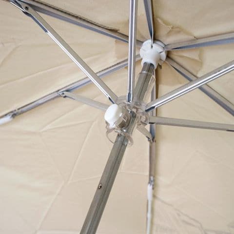 傘を閉じる際に爪や指を挟まないよう、ボタン式の安全ろくろ付き。