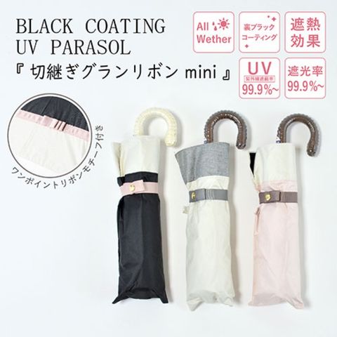 三国 MKN 遮光&遮熱 黒コーティング 50cm 耐風楽ミニ傘 切継ぎグランリボンmini ブラック S2515602 【同梱不可】[▲][AS]