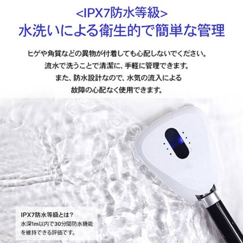 STEP 5)ヒゲ、角質などの異物が付着したら流水で洗った後水気を取り除いてください。
