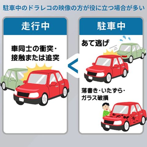 駐車中のイタズラ、防犯、など監視カメラとして役目が増えます。