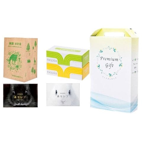 内容物 : 鼻セレブポケットティッシュ(12W)・鼻セレブポケットプレミアムティッシュ(8W)・紙製水切り袋×各1、ネピアミニティッシュ(20W)×2