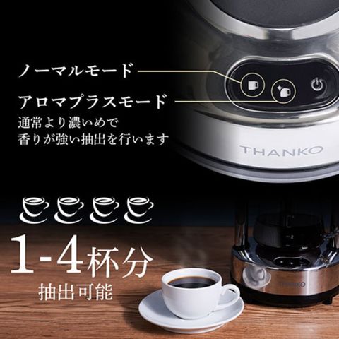 ノーマルモードとアロマプラスモード(香りが強い抽出)の2モードで楽しめます。