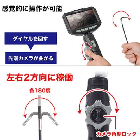 先端カメラ部は手元のダイヤルを回すと、左右2方向に180度曲がります。