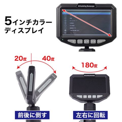 ●2方向に180度先端カメラが曲がる先端可動式3.9mm工業用内視鏡