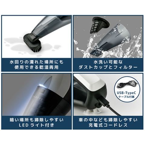 ●車の中でも掃除しやすい充電式コードレス(USB-TypeCケーブル付属)