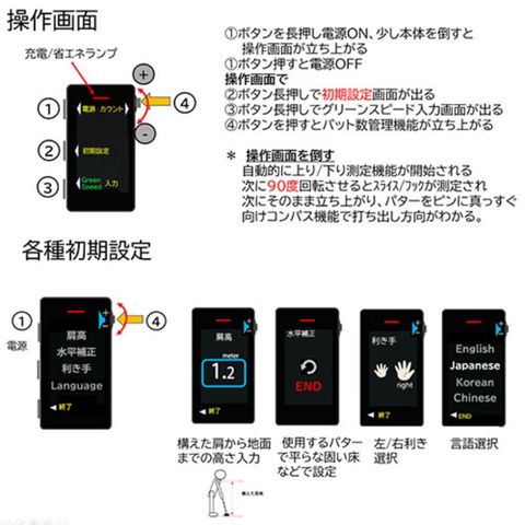 日本語、英語、中国語、韓国語にも対応した、革新的ゴルフAIデバイス"Green Caddie"です。