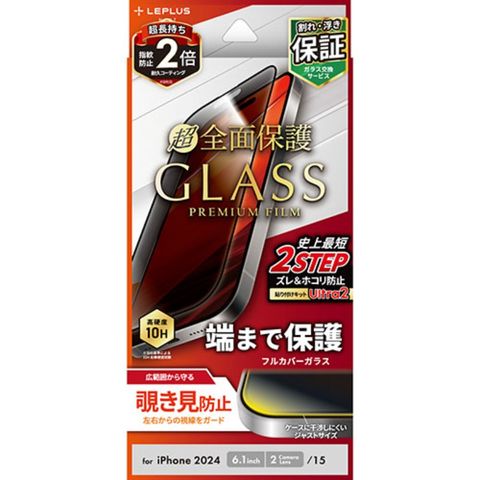 LEPLUS NEXT iPhone 16/iPhone 15 ガラスフィルム GLASS PREMIUM FILM 全面保護 覗き見防止180° LN-IM24FGFN 【同梱不可】[▲][AS]
