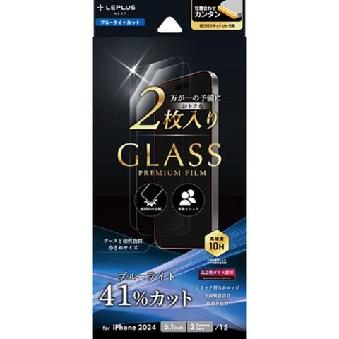 LEPLUS NEXT iPhone 16/iPhone 15 ガラスフィルム 2枚入り ブルーライトカット LN-IM24FGB2SET 【同梱不可】[▲][AS]