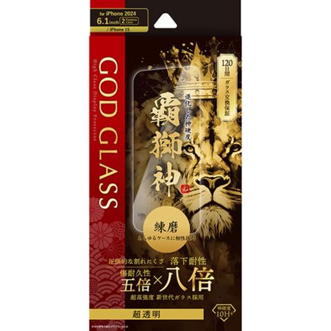 GOD GLASS iPhone 16/iPhone 15 ガラスフィルム GOD GLASS 覇獅神 練磨 超透明 GG-IM24GL 【同梱不可】[▲][AS]