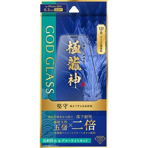 GOD GLASS iPhone 16 Pro ガラスフィルム GOD GLASS 極龍神 堅守 反射防止・ブルーライトカット GG-IP24GDFMB 【同梱不可】[▲][AS]
