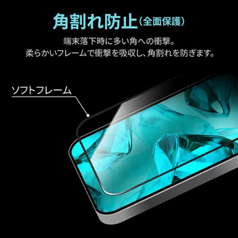 ・柔らかいフレーム素材でガラスの角割れを防止
