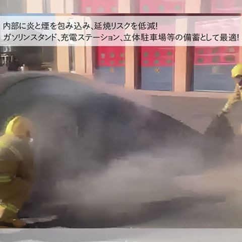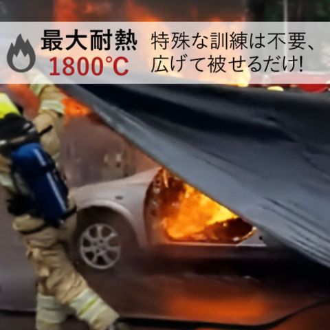 ●燃えている車両にブランケットを掛けるだけで、周囲への延焼を防止します。