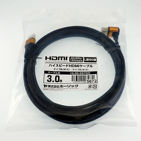 【5個セット】ホーリック HDMIケーブル L型90度 3m ゴールド HL30-567GDX5 【同梱不可】[▲][AS]