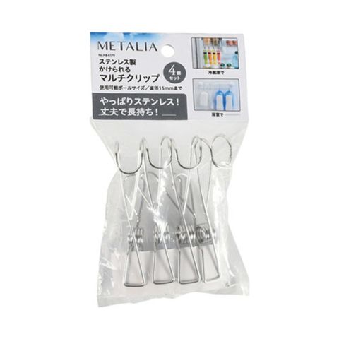 【10セット】 パール金属 メタリア ステンレス製かけられるマルチクリップ4個セット HB-6179X10 【同梱不可】[▲][AS]