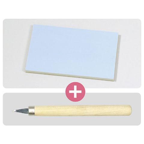 セット内容 : けしゴム印 ハガキ判(150×100×8mm)×1、印かん刀(全長…130mm、刃部…幅1.5×長20mm)×1