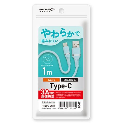 【10本セット】 HIDISC やわらかケーブル USB-A to Type-C アイシーブルー HD-SACC1BLX10 【同梱不可】[▲][AS]