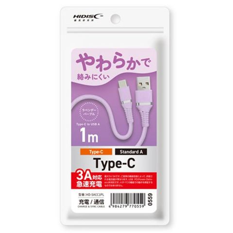 【10本セット】 HIDISC やわらかケーブル USB-A to Type-C ラベンダーパープル HD-SACC1PLX10 【同梱不可】[▲][AS]