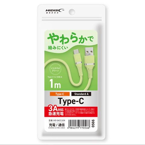 【10本セット】 HIDISC やわらかケーブル USB-A to Type-C ピスタチオグリーン HD-SACC1GNX10 【同梱不可】[▲][AS]