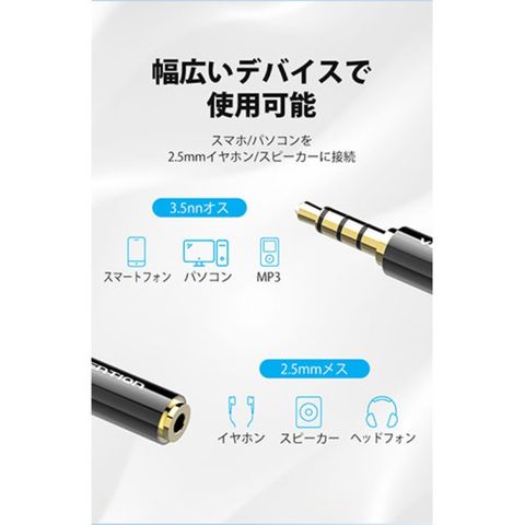 【5セット】 VENTION 3.5mm Male to 2.5mm Female 変換AUXアダプター メタルタイプ ブラック BF-6647X5 【同梱不可】[▲][AS]