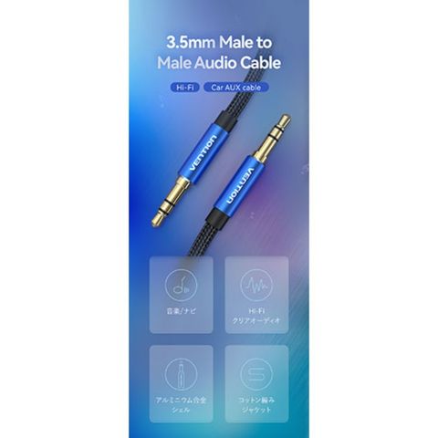 【5本セット】 VENTION 3.5mm Male to Male オーディオケーブル コットン編み アルミニウム合金 0.5m ブルー BA-4513X5 【同梱不可】[▲][AS]