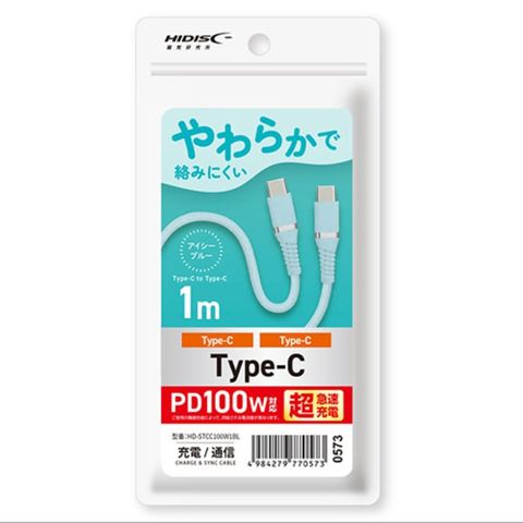 【5本セット】 HIDISC やわらかケーブル Type-C to Type-C アイシーブルー HD-STCC100W1BLX5 【同梱不可】[▲][AS]