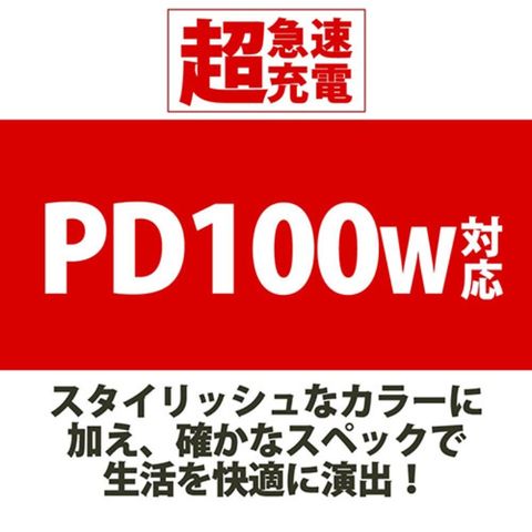 PD100Wに対応しておりますので、端末の高速充電や対応しているノートPCへの充電が可能です。