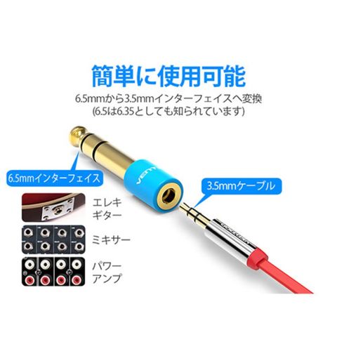 【5セット】 VENTION 6.5mm Male to 3.5mm Female 変換AUXアダプター ブルー VA-6661X5 【同梱不可】[▲][AS]
