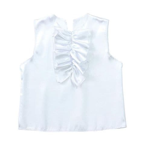 ひらひらの前フリルがついたかわいいソフトサテンシャツです。