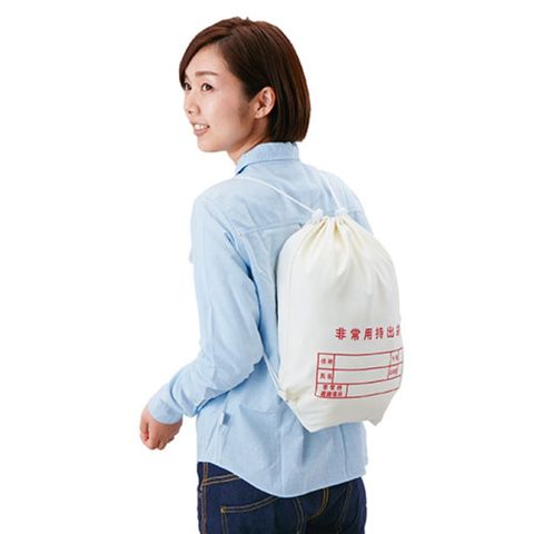 避難場所・住所・氏名を記入できる両リュック・非常用持ち出し袋です。