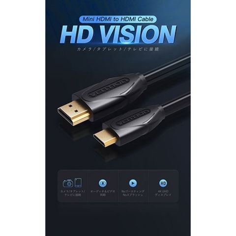 【5本セット】 VENTION ミニHDMIケーブル 4K対応 1.5m ブラック VA-1703X5 【同梱不可】[▲][AS]
