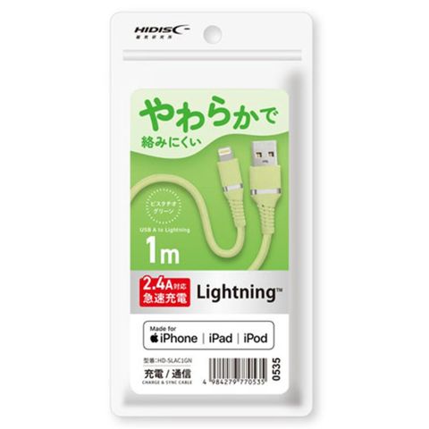 【5本セット】 HIDISC やわらかケーブル USB-A to Lightning ピスタチオグリーン HD-SLAC1GNX5 【同梱不可】[▲][AS]