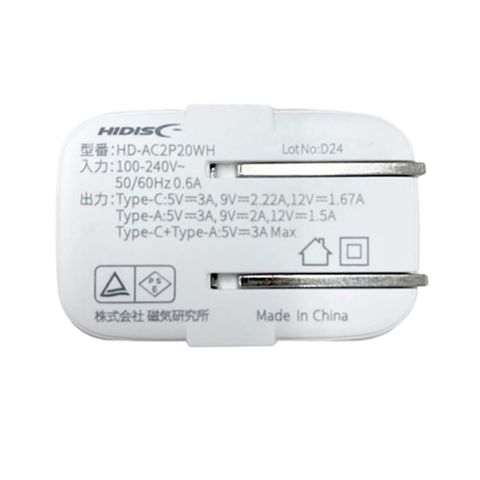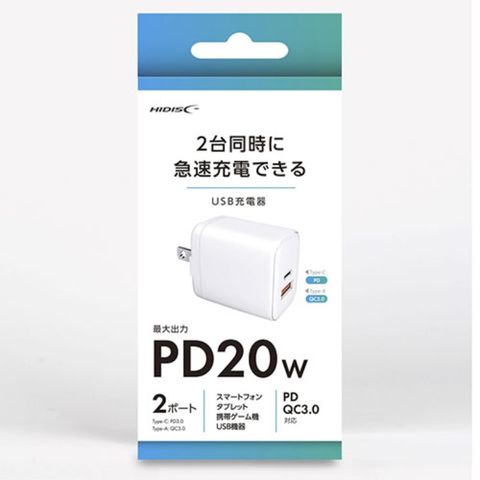 【5セット】 HIDISC USB充電器 PD20W Type-Cx1/Type-Ax1 スイングプラグ採用 ホワイト HD-AC2P20WHX5 【同梱不可】[▲][AS]