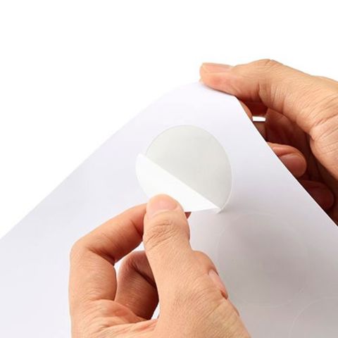 ■丸型にカットされていて、台紙から剥がしやすいので効率よくラベル貼り作業を行えます。