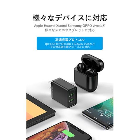 対応プロトコル(USB-A) : QC 3.0/FCP/AFC/BC 1.2/Apple 2.4A