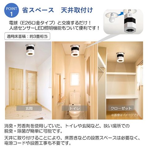 トイレや玄関など一般の空気清浄機が置きにくい空間で活躍します。