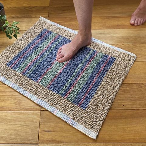 ・機械で織るような均一できれいに糸目がそろったマットとは異なり、一目一目職人の力加減で織り上げられており、糸と糸の間に生まれる空気感や不揃いな糸の凹凸感が足の裏に心地よくフィットします。