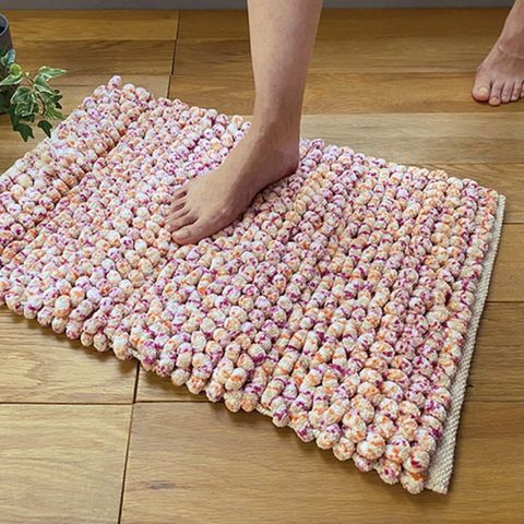 ・機械で織るような均一できれいに糸目がそろったマットとは異なり、一目一目職人の力加減で織り上げられており、糸と糸の間に生まれる空気感や不揃いな糸の凹凸感が足の裏に心地よくフィットします。