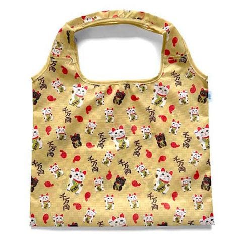 【5枚セット】 レップ ショッピングバッグ 日本の伝統的な吉祥文様 招き猫/イエロー REP-571507X5 【同梱不可】[▲][AS]